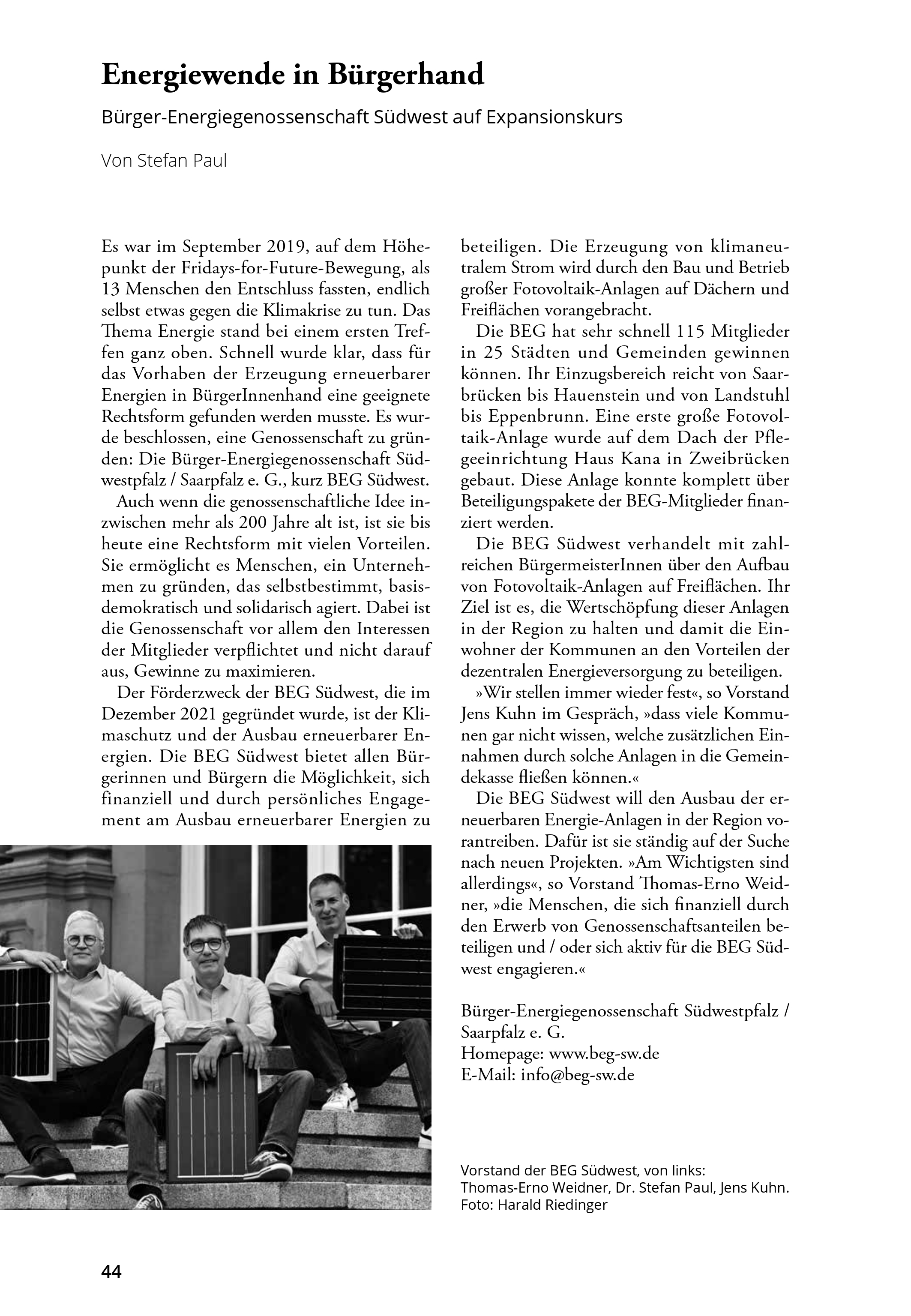 In der „Winter 2023/2024“ - Ausgabe der saarbrücker hefte, "Die saarländische Zeitschrift für Kultur und Gesellschaft" wird unsere BEG Südwest vorgestellt: